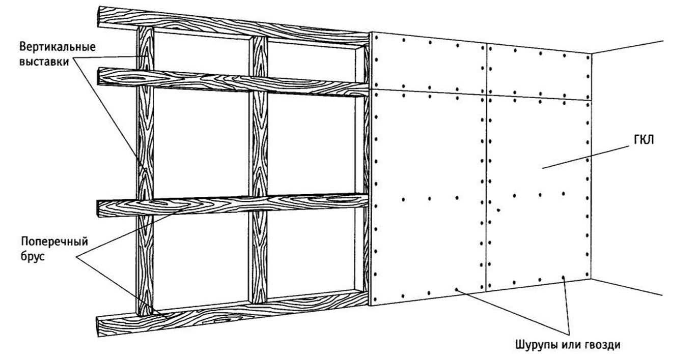 Существует два основных способа, как крепить гипсокартонную конструкцию к стене: