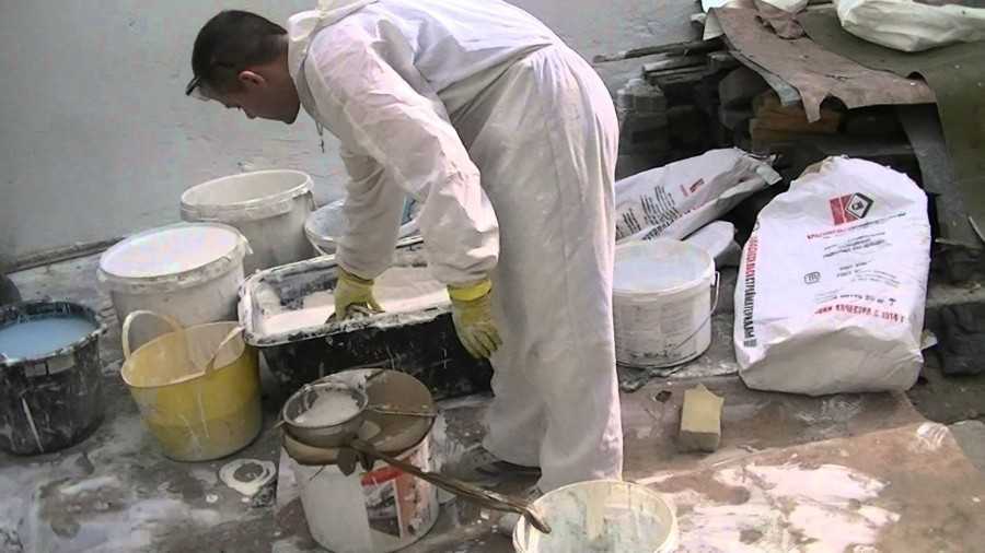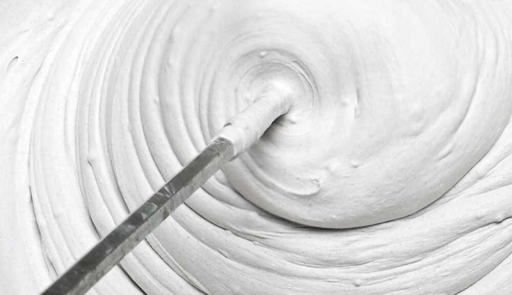 Чтобы её сделать потребуется 2 части клея с гипсом и 1 часть мела, пропущенного через сито. Такая смесь растворяется в воде, а затем наносится шпателем на потолок. По мере высыхания поверхность нужно затереть наждачной бумагой, после чего загрунтовать и оставить на просушку на 24 часа.