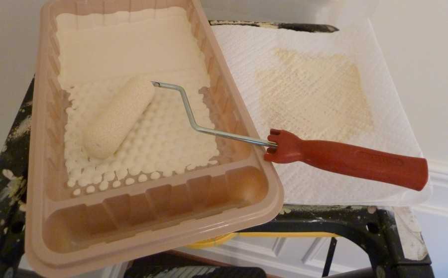 После того как работы с кистью закончены, можно начинать красить валиком. Обмакните его в емкость с краской, подождите, пока стекут излишки, и несколько раз (не нажимая) проведите по плоской поверхности (куску фанеры, например). Минимальное число слоев краски – 2. Но бывают случаи, когда приходится красить и по 3-4 раза. Это может быть связано с наличием жирных пятен на поверхности или с некачественной шпатлевкой. Перед нанесением последующего слоя дождитесь полного высыхания предыдущего.