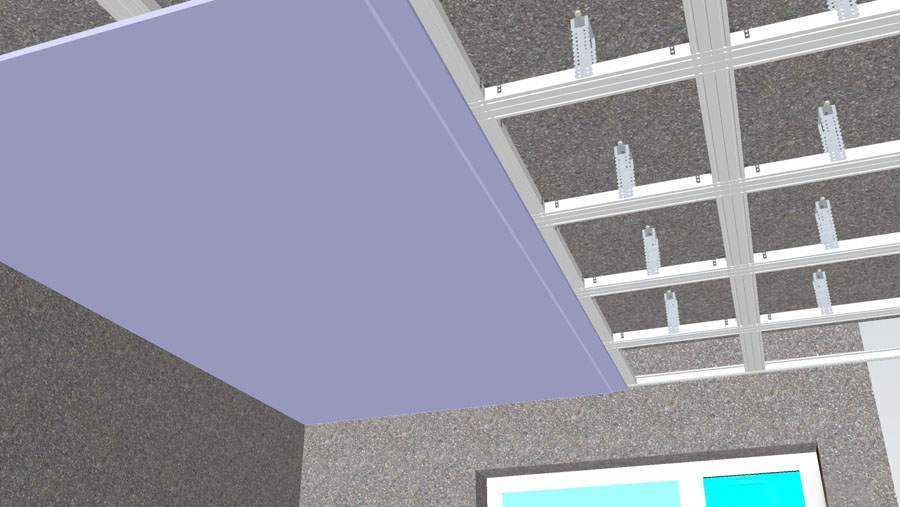Установка потолочной поверхности из гкл происходит поэтапно. Несмотря на сложность или простоту запланированной конструкции, необходимо изготовить каркас, поверх которого будет выполняться последующая отделка.