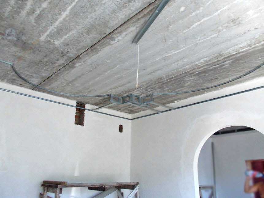 Прежде, чем установить многоуровневые гипсокартонные потолки, надо сделать разводку на освещение.
