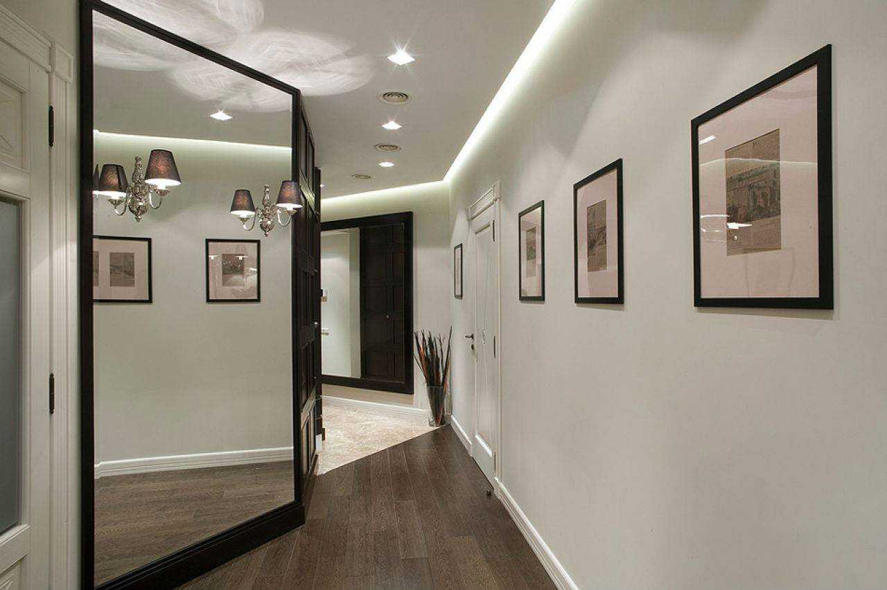 Для освещения используются приборы разных типов. Более традиционный — люстры. По способу крепления подразделяются на подвесные и накладные. Первые монтируются на крюк, а вторые — на планку.