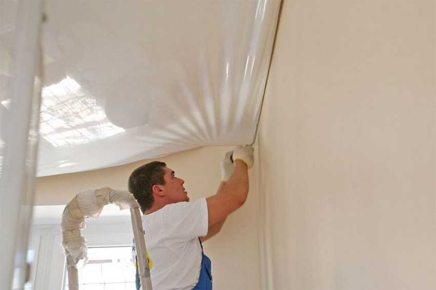 Некоторые источники советуют самостоятельно заняться просушкой с помощью промышленного, либо мощного бытового фена — не стоит. Если с тканевым потолком такой трюк еще может сработать (но сушить придется очень долго), в случае ПВХ-пленки эти действия абсолютно бесполезны.