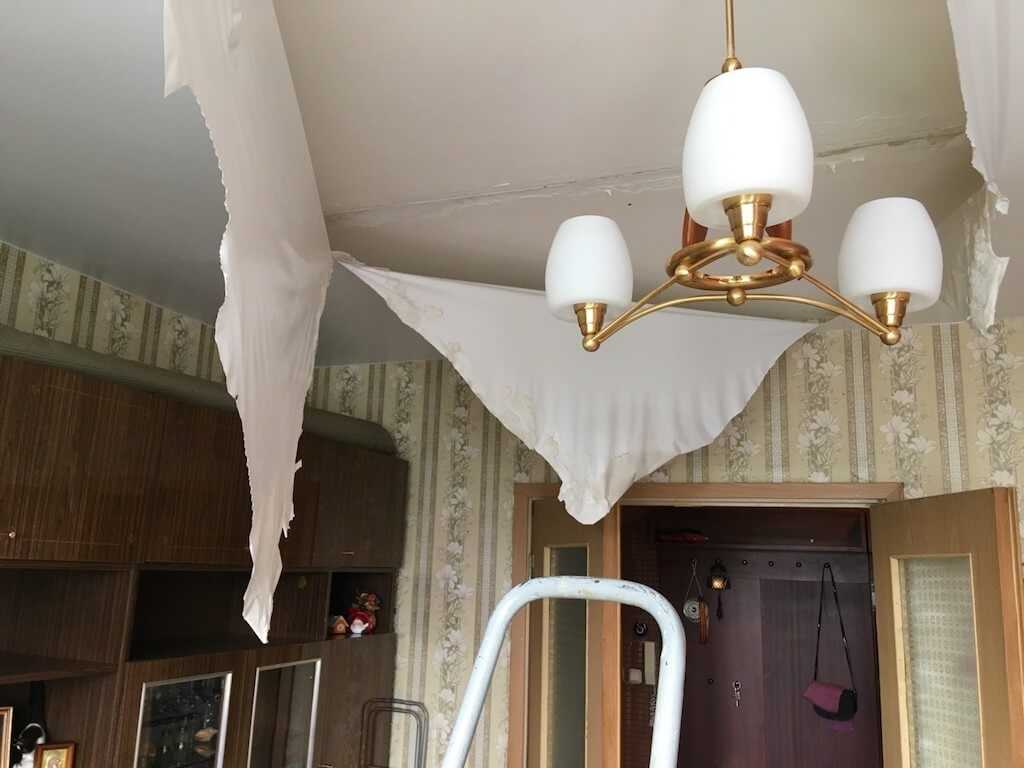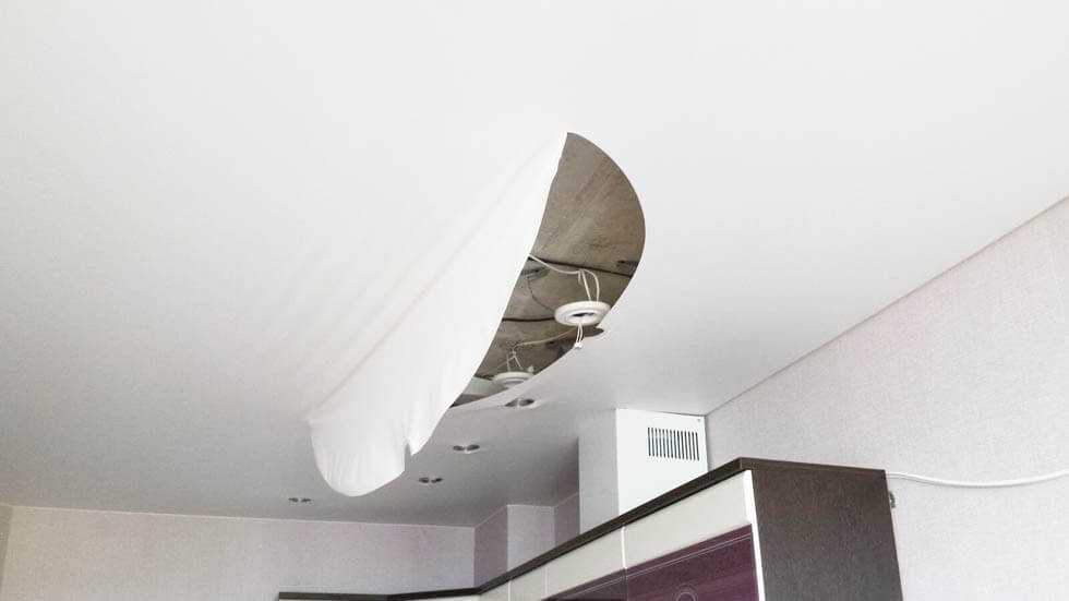 Очень важно как можно быстрее остановить воду, чтобы предотвратить обрыв полотна. Если жидкость поступает из верхней квартиры, нужно сразу поставить в известность соседей