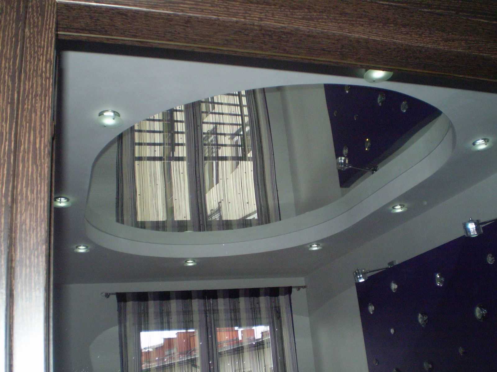 Часто лаковые полотна используют в качестве одного из элементов двухуровневого потолка. Выбор глянца здесь оправдан и станет интересным решением, особенно если планируется получить отражающий эффект не по всей площади, а только в некоторых областях потолка.
