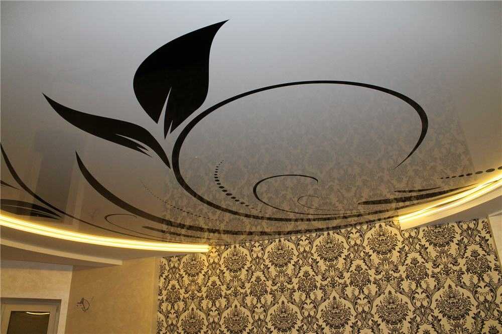 Поскольку чаще всего натяжные потолки монтируются в последнюю очередь, когда ремонт уже практически завершен, нужно проверить, как рисунок и фактура полотна сочетается с обоями либо краской на стенах.