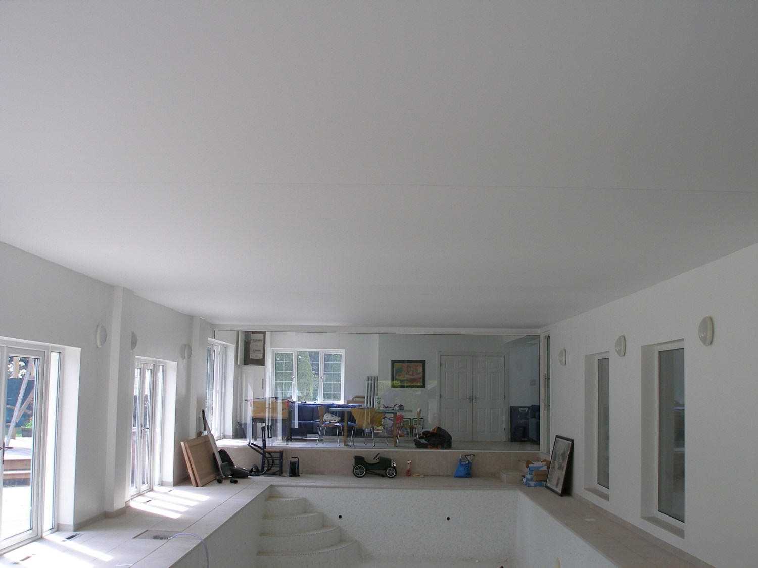 - Данный вид натяжных потолков является морозостойким. В отличие от пленки, тканевые потолки под температурным воздействием не трескаются и не сжимаются. Именно поэтому их нередко используют для декорирования потолков в помещениях, которые не отапливаются – в спортивных комплексах и торговых залах.