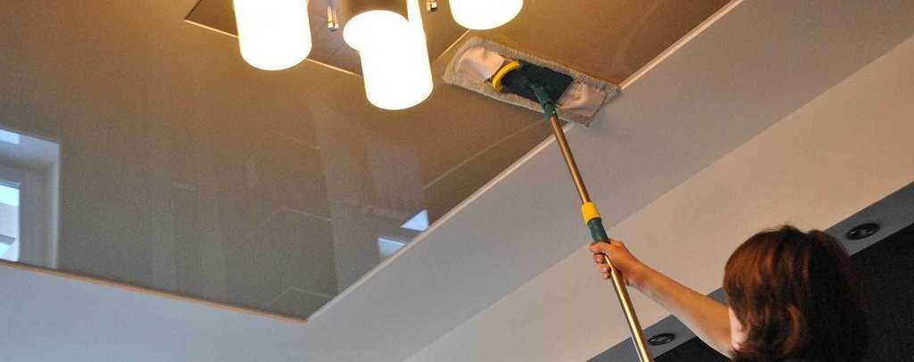 Как ухаживать за натяжными потолками глянцевыми? Процесс уборки проводится в несколько этапов: