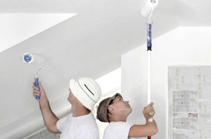 Правильно подобранный оттенок краски может достаточно интересно лечь на гипсокартон. Не старайтесь добиться идеального ровного покрытия. Разводы, неровности и шероховатости добавят такому потолку фактуры.