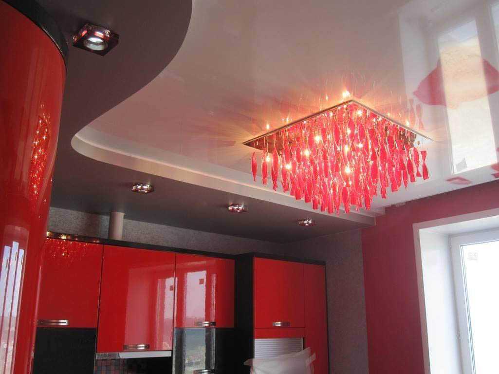 Потолки натяжного типа могут иметь сложную конфигурацию в 2 и более уровней. Их конструкция всегда комбинированная — с помощью специальной ПВХ-плёнки создаются лишь отдельные её плоскости или фрагменты. В качестве же основного материала в большинстве случаев применяется старый добрый гипсокартон. При соблюдении технологии монтажа такой потолок способен выдержать достаточно высокие нагрузки, что позволяет не ограничивать фантазию дизайнера и устанавливать системы освещения любой сложности. Наконец, главным достоинством натяжных многоуровневых потолочных конструкций является завидная долговечность. Даже самое сложное конструктивное решение прослужит вам долгие годы, сохраняя надёжность и презентабельный внешний вид.