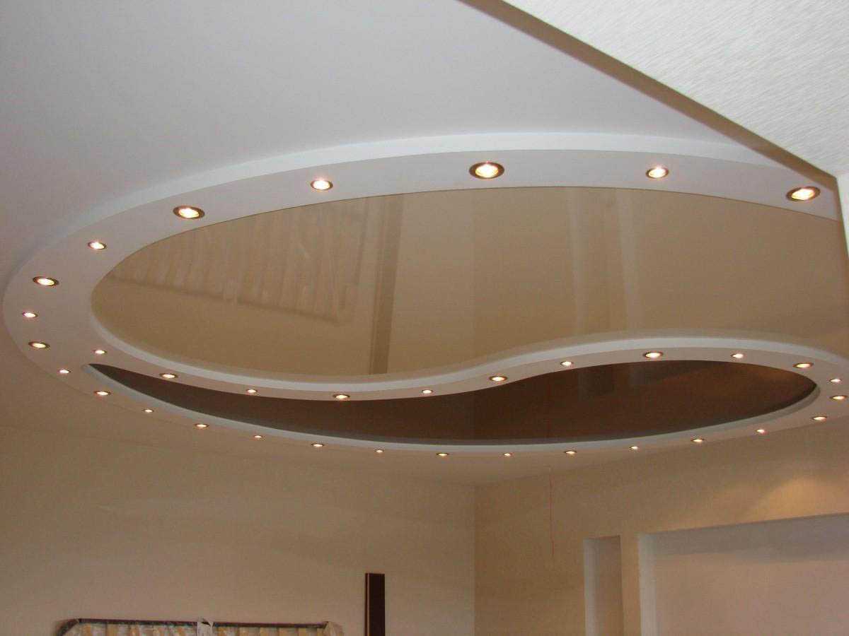 Проектирование конструкции натяжных потолков иногда может сочетать натяжные полотна одновременно с гипсокартоном, оно производится специалистом в этой области. Дизайн конструкций потолков иногда предполагает их установку одновременно с установкой подвесной конструкции из гипсокартона к потолку. Использовать такое сочетание выгодно.