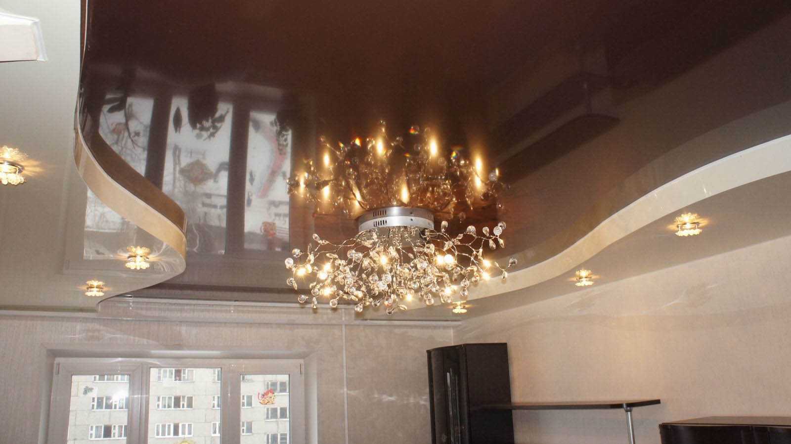 Вариации многоуровневых натяжных потолков на фото