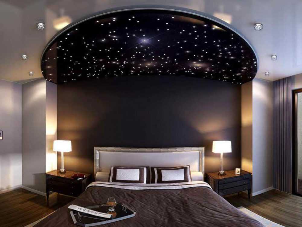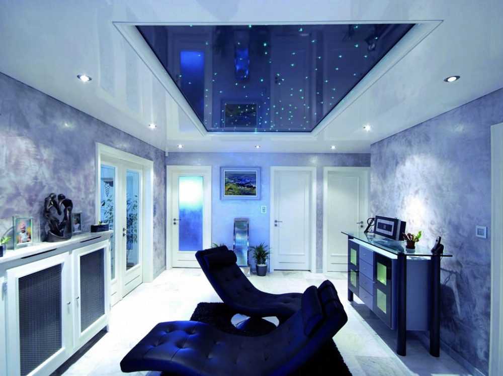 - большая площадь базового потолка закрывается натянутой пленкой, выбранного цвета и фактуры (звездное небо, галактика или голубое облачное небо).