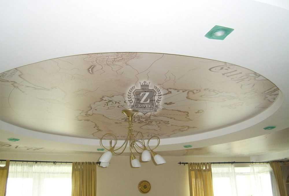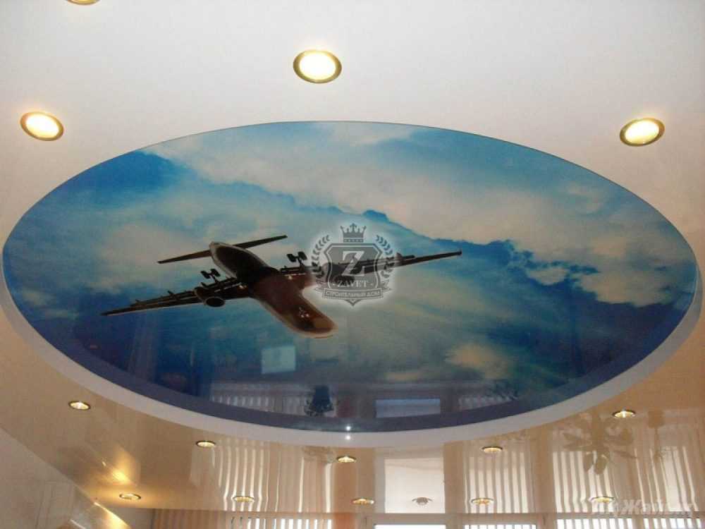 Сочетание каждого уровня с фоном или с рисунком на пленке обеспечивает необходимый эффект. Этот вариант наглядно передает способ установки двухъярусной конструкции. С многоуровневыми системами дело обстоит несколько сложнее.