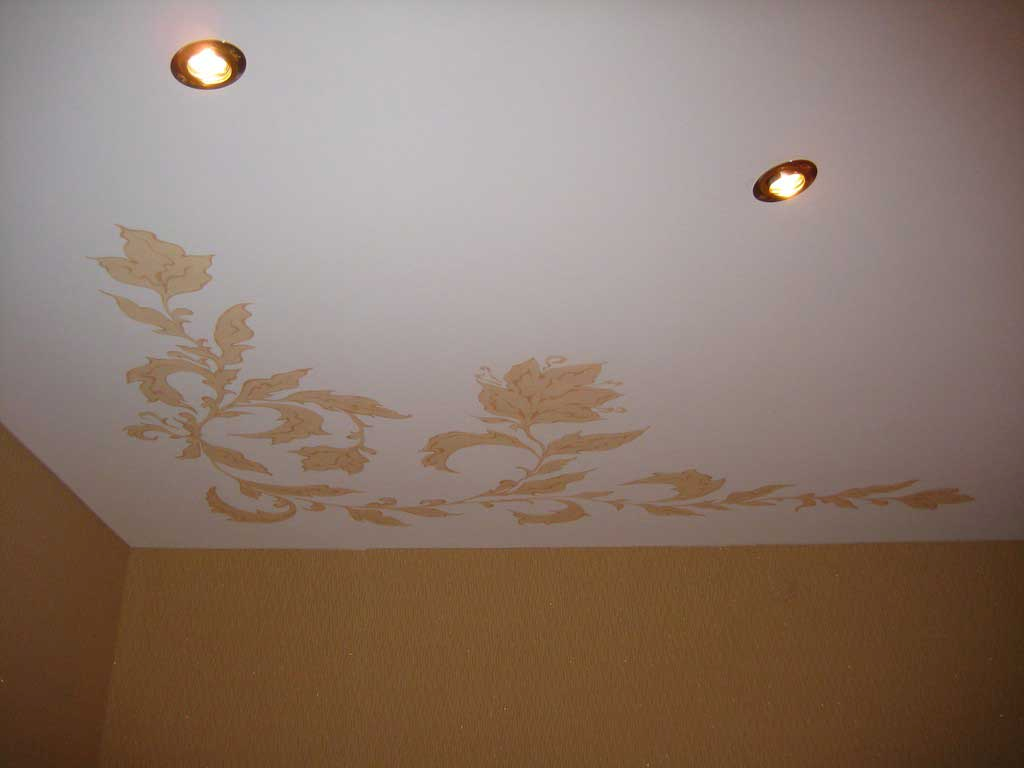 Фактурой он напоминает выбеленную поверхность. В этом его отличительная черта. Матовое потолочное полотно не отражает обстановку комнаты как глянцевое. Оно не создает бликов и отблесков, поэтому цветовая гамма на потолке будет точно соответствовать вашему выбору. К примеру, если полотно белого цвета, то при любых условиях его вид будет одинаковым, что с успехом применяется для оформления интерьеров классического стиля. На это полотно прекрасно наносится фотопечать или ручная роспись.