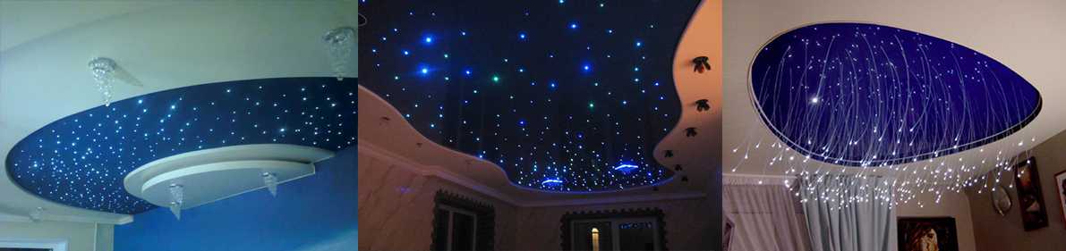 На сегодняшний день существует масса различных вариантов дизайна «звёздного» потолка: навесные конструкции с оптическими волокнами, светодиоды, широкоформатная печать, комбинация всевозможных отделочных материалов, а также новые приспособления техники и так далее.