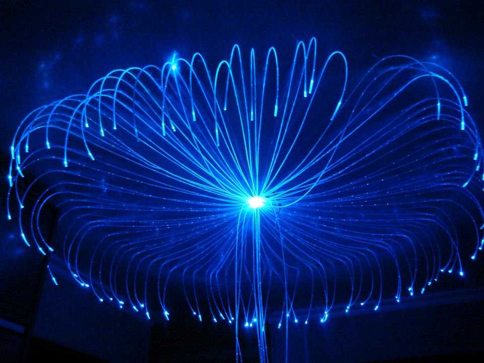 - Оптоволокно. Оптические нити при эксплуатации не греются. Сами волокна проводят только свет без тока, тем самым они зарекомендовали себя, как низкие потребители электроэнергии. Эксплуатационный срок их составляет около 10 лет. Единственный недостаток такого освещения – это высокая себестоимость.