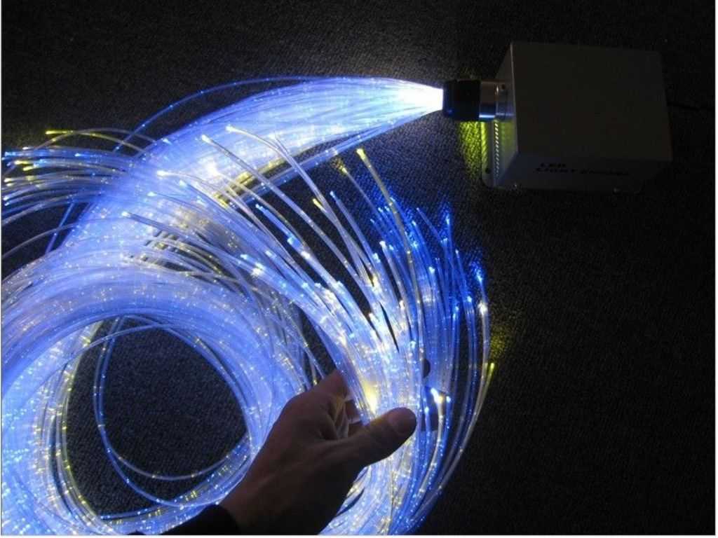 Но можно использовать и другой способ, обеспечивающий разнокалиберность световых точек на потолке. Для этого нужно купить оптоволокно разного диаметра. Есть нити, сечение которых не толще человеческого волоса, и более толстые. Есть кабели бокового свечения.