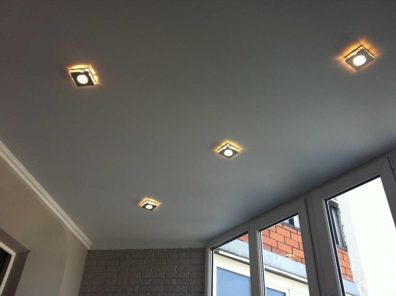 Натяжные потолки идеально подходят для встроенных светильников. При их выборе следует учитывать эксплуатационные особенности материала и температурные ограничения: при превышении нормативных показателей полотно будет коробиться.