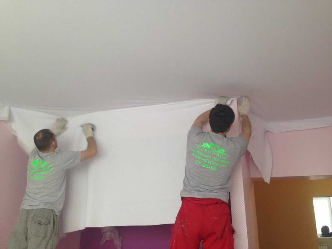 Занимает сравнительно немного времени. Это, конечно, при наличии необходимого инструмента и некоторого навыка в проведении таких работ. Так, например, подвесной потолок требует затратить гораздо больше сил и энергии. Поэтому, когда просто хотят сэкономить, у некоторых домашних мастеров возникает желание выполнить эту работу самостоятельно. Сделать это действительно реально, некоторым даже удавалось обойтись практически без посторонней помощи. Когда потолки вам устанавливают от фирмы, этим обычно занимаются два человека.