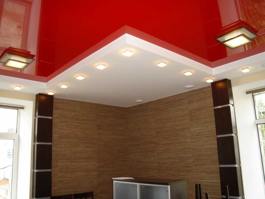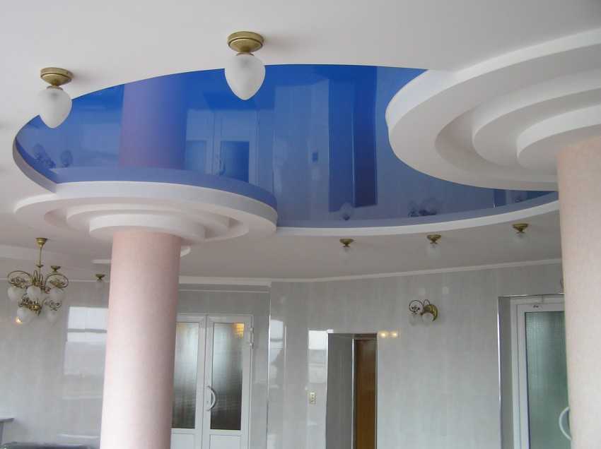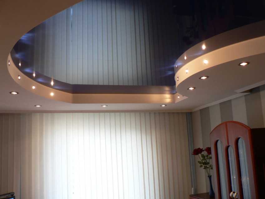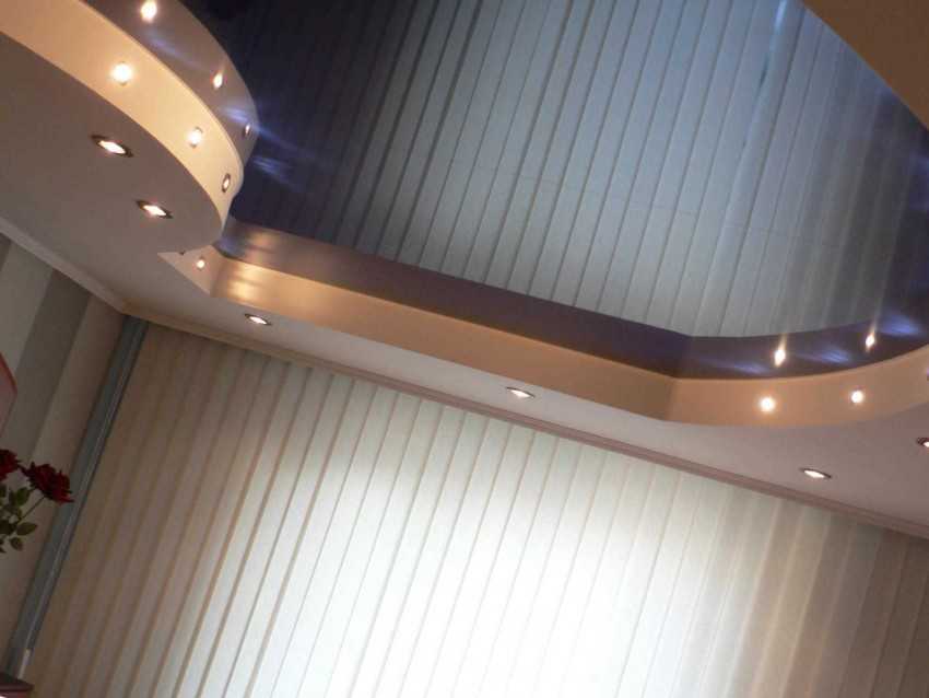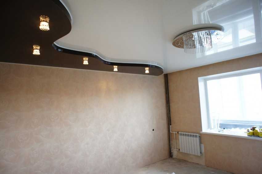 Двухцветные натяжные потолки — фото обзор примеров в интерьере
