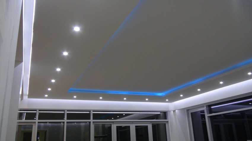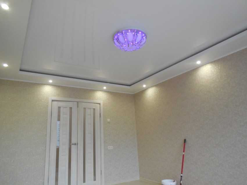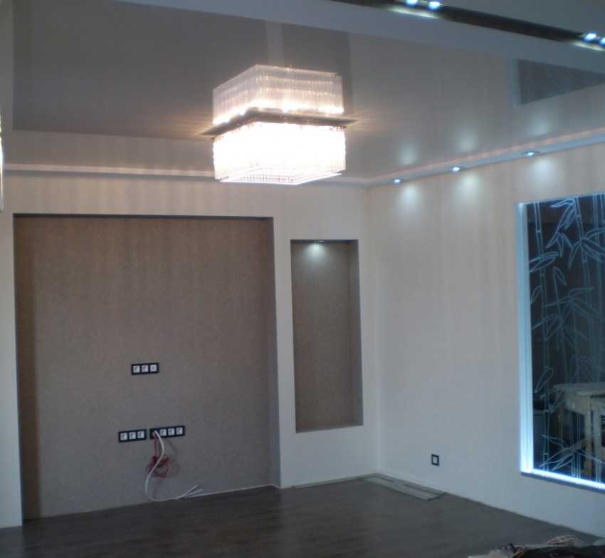 О том, какие установить светильники, следует подумать заранее. От этого зависит высота, на которую опустятся натяжные потолки, считая от базового.
