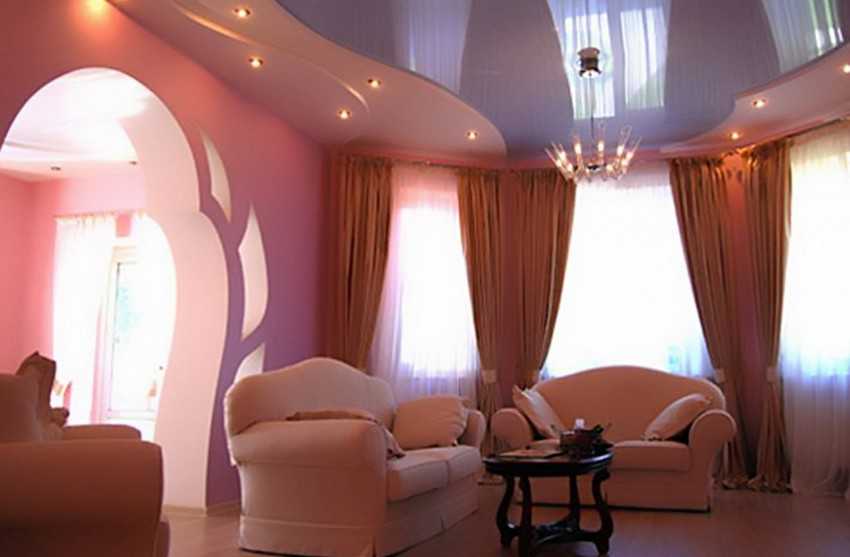 Это, пожалуй, та технология, которая позволяет реализовать действительно любую фантазию. Хотите золото на потолке — запросто, нужен бархат — без проблем, фото — выбирайте какое. Количество уровней и их форма ограничивается только фантазией.