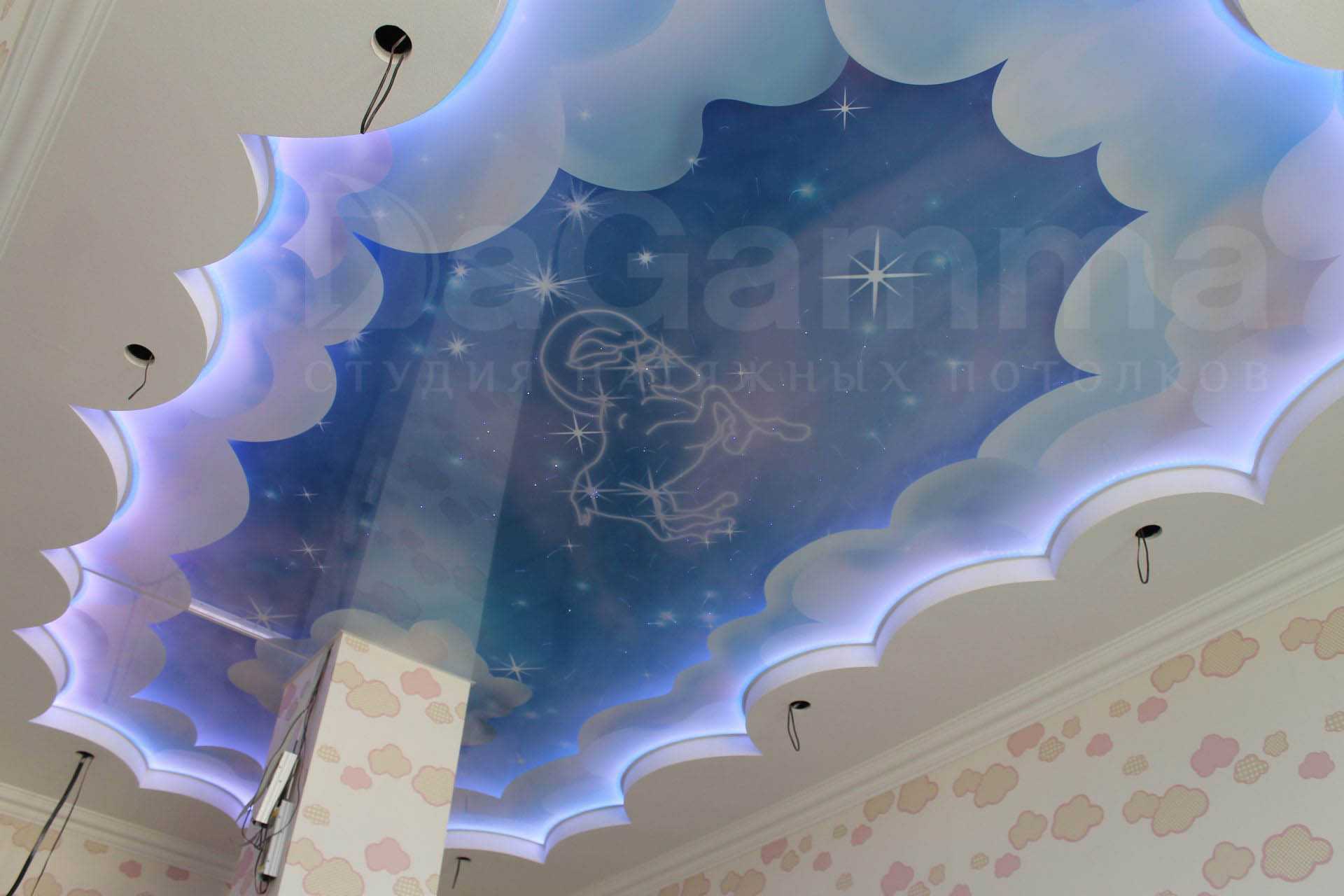 Специалисты утверждают, что на тканевую поверхность потолка можно нанести любое изображение, главное, чтобы оно было хорошего качества.