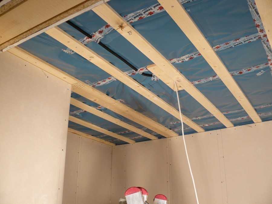 - над потолком можно спрятать провода или дополнительную изоляцию;