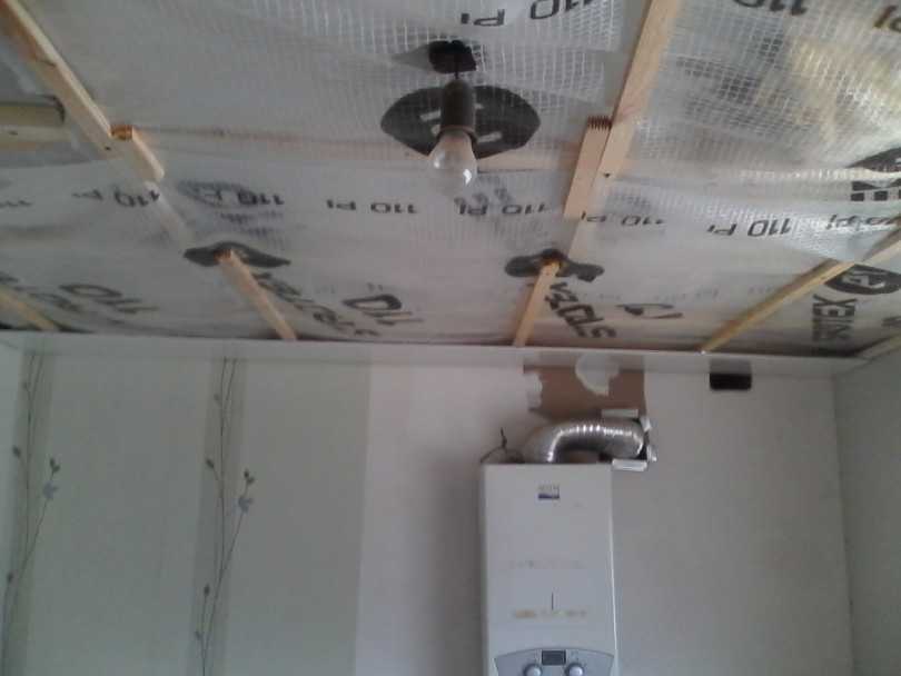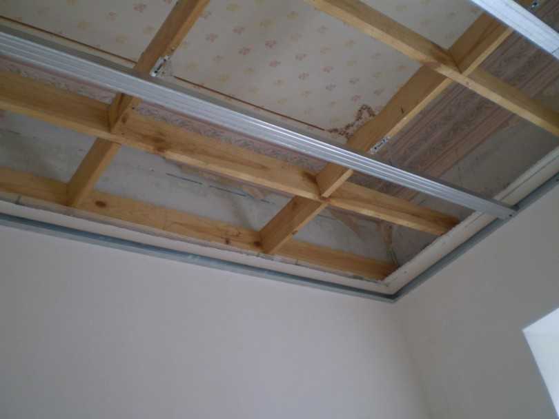 Если в качестве элементов каркаса используются брусья, процесс будет сводиться фактически к простой их фиксации к капитальной потолочной поверхности: