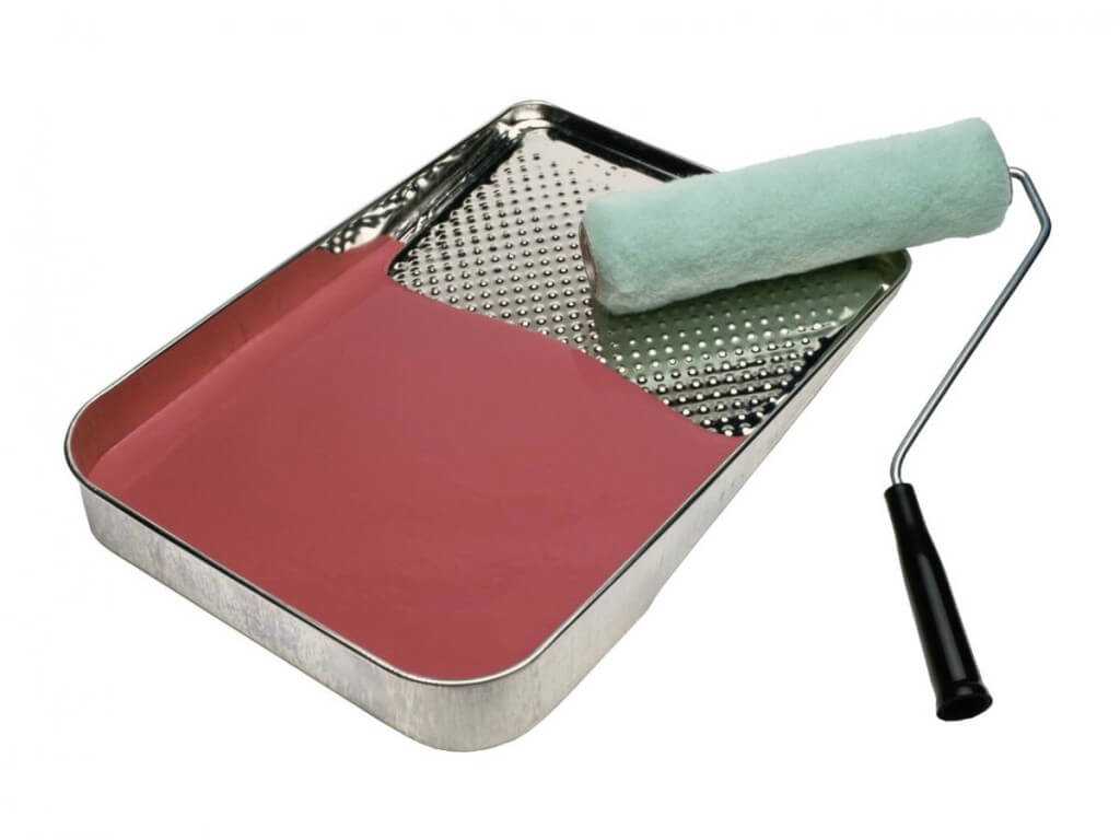 - Опустите валик в емкость и покатайте по склону. Так краска распределится по валику ровно;