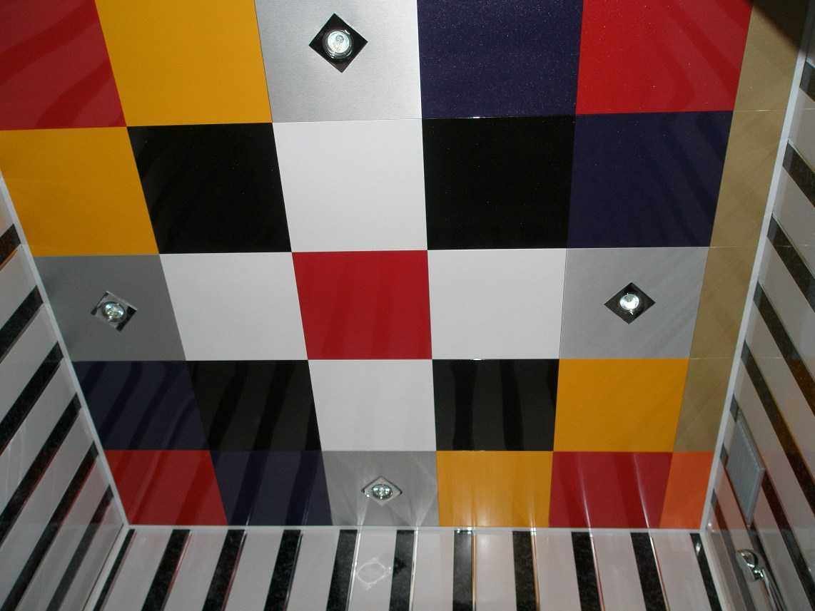 Из стеклянных потолочных панелей можно создать зеркальное или матовое покрытие, витражный потолок или поверхность с художественной росписью. Размер стеклянных панелей стандартный – 60х60 см, позволяющий их применять для облицовки подвесных систем Армстронг. Недостатком стеклянных плит является их хрупкость. При падении они часто разбиваются вдребезги и восстановлению уже не подлежат. Кроме этого, во время обрушения стеклянного изделия с большой высоты может произойти травмирование людей, находящихся в этом месте.