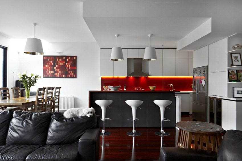 | Черный | Белый, красный | Визуально уменьшает объем помещений, подчеркивает благородство и шик, в чрезмерных количествах может вызвать головную боль и дискомфорт, обязательно требует сочетания с контрастным белым |