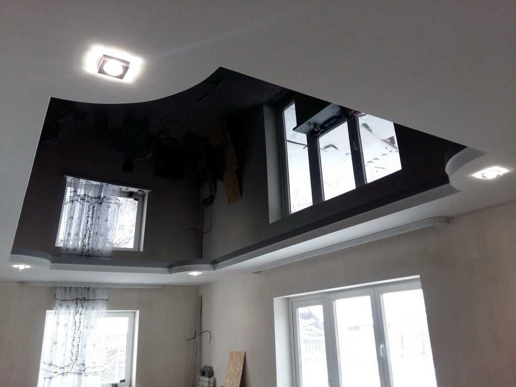 Такое потолочное покрытие создают из специальной плёнки ПВХ, отличающейся гибкостью и эластичностью. Условно все разновидности делят на три категории: матовую, глянцевую и сатиновую. Из них наиболее дешёвым вариантом оформления потолка является глянцевая плёнка. Она даёт блики и отражает предметы, находящиеся внизу.