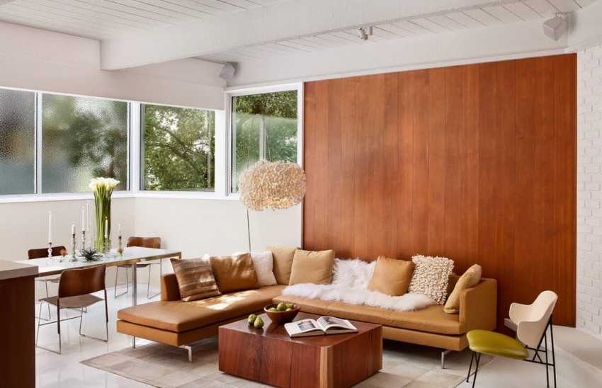 Изготовленные из МДФ панели, очень хорошо имитируют настоящие материалы, но имеют улучшенные эксплуатационные характеристики. Их чаще применяют в городских квартирах, чем деревянные разновидности. Это оправдано – внешний вид, после монтажа, практически не будет отличаться от натурального дерева, а по стоимости такое покрытие выйдет в разы дешевле.