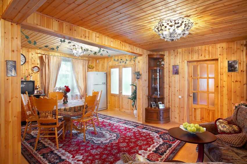 Часто ее используют для отделки не только стен, но и потолков, что придает всему помещению законченный вид.