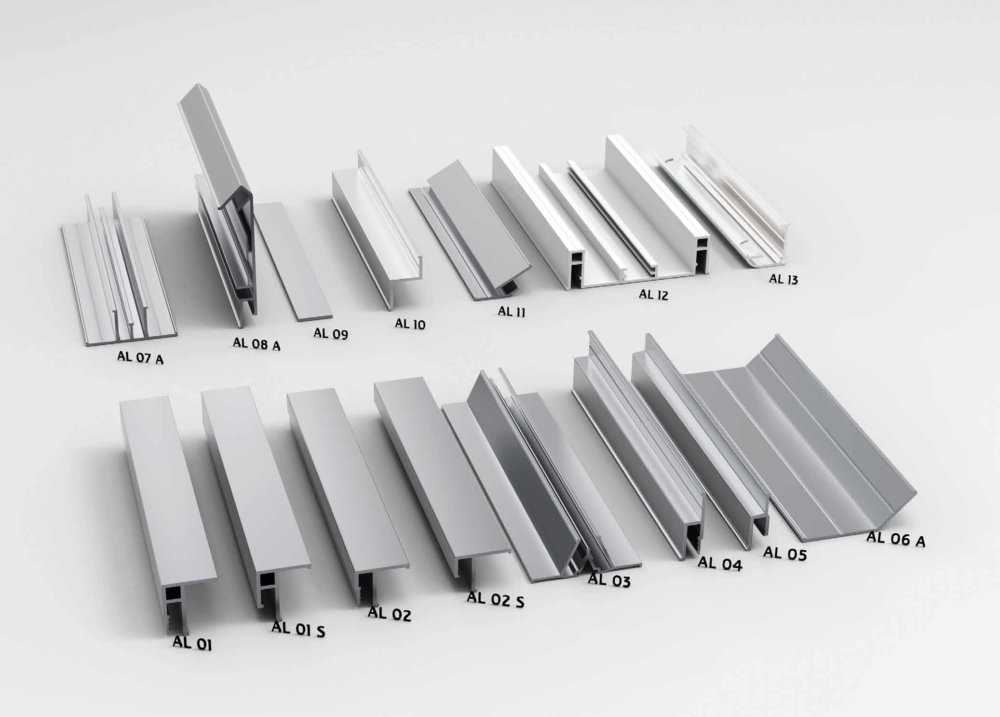 Чаще используются алюминиевые профили в силу высокой прочности, несущей способности и устойчивости к деформациям. Значительная стоимость компенсируется практически бессрочным периодом службы. Изделия из пластика более дешевые и гибкие, способны повторять все изгибы поверхности, но недолговечны.