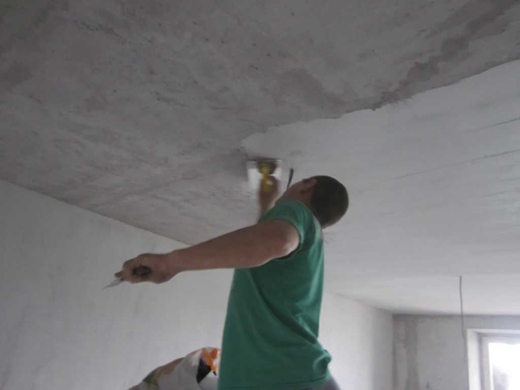 - Перед тем, как обновить потолок, необходимо зачистить трещины, углубления, сколы, удалить плесень и ржавчину, а затем тщательно промыть основание.