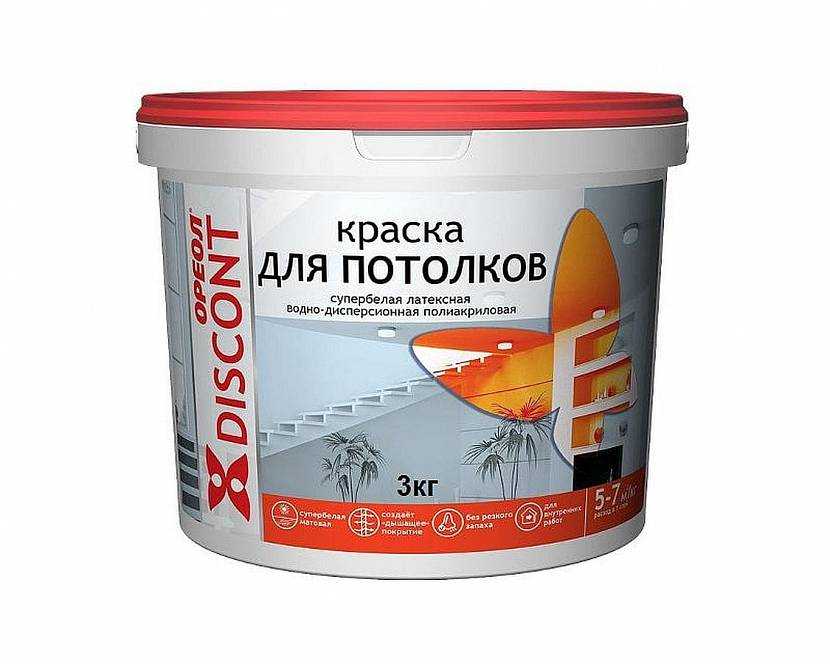 Известный производитель стройматериалов для зоны над головой выпускает акриловые и водоэмульсионные краски. Декоративная матовая поверхность гармонично впишется в интерьер гостиной, спальни или санузла. Окрашенный потолок не выгорает на солнце и не разрушается от воздействия влажности. Износоустойчивость компенсирует высокую цену.