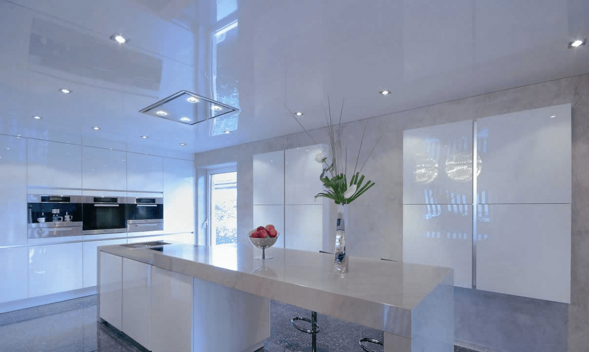 Новый натяжной потолок моментально преображает комнату. Абсолютно ровная поверхность не боится воды, пара и огня. Стоит такое удовольствие не так дорого, но при этом отлично скрывает серьезные архитектурные недочеты. Единственное, что пугает потребителей — это запах, который некоторое время «стоит» в комнате после установки.