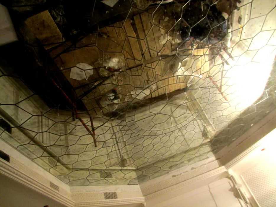 Зеркальная плитка с фацетом, центральная композиция на потолке в виде панно