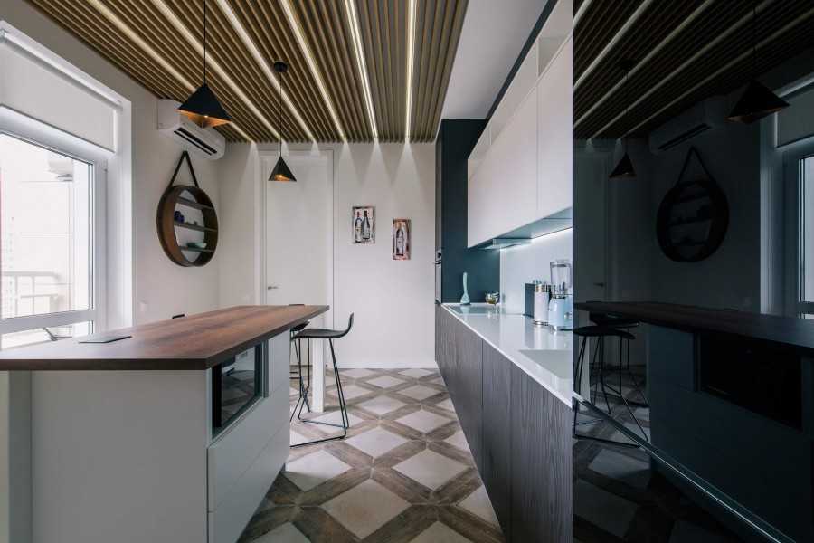 - Дизайнерские. Такой отделочный материал изготовляют под заказ, и он может быть представлен сложными геометрическими формами. Поэтому потолок получается оригинальным и необычным. Часто для интерьера выбирают рейки в виде букв S, V или П.